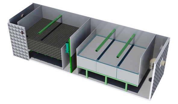 5) в 5-ой камере септика происходит разделение взвешенного, активного ила и чистой воды путём силы гравитации.